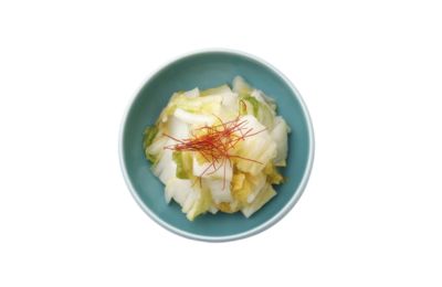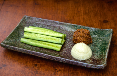¥385 (tax included)Mascarpone cheese blended with finely chopped iburigakko (smoked pickled radish).