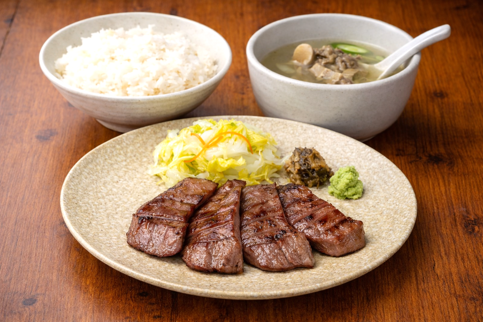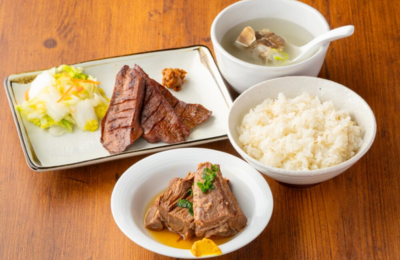 3 pieces of Grilled Beef Tongue/Gyutan kakuni/Tail Soup/Barley Rice