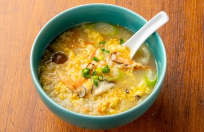 以白飯、蔬菜與雞蛋熬煮而成的日式粥品。※非牛尾湯。